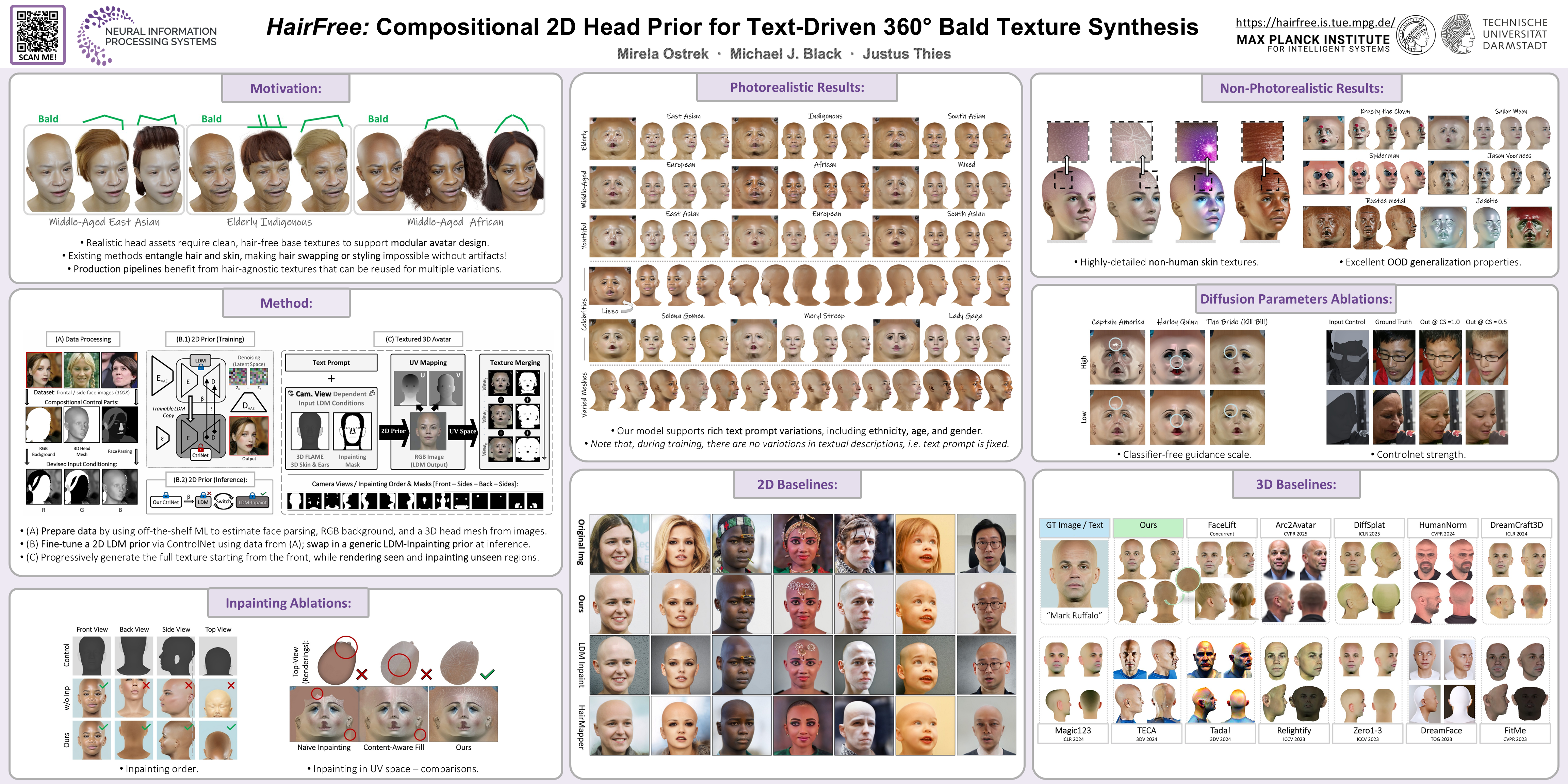 Perceiving Systems Conference Paper HairFree: Compositional 2D Head Prior for Text-Driven 360° Bald Texture Synthesis Ostrek, M., Black, M., Thies, J. In Advances in Neural Information Processing Systems (NeurIPS), Advances in Neural Information Processing Systems (NeurIPS), December 2025 (Published) pdf project poster BibTeX